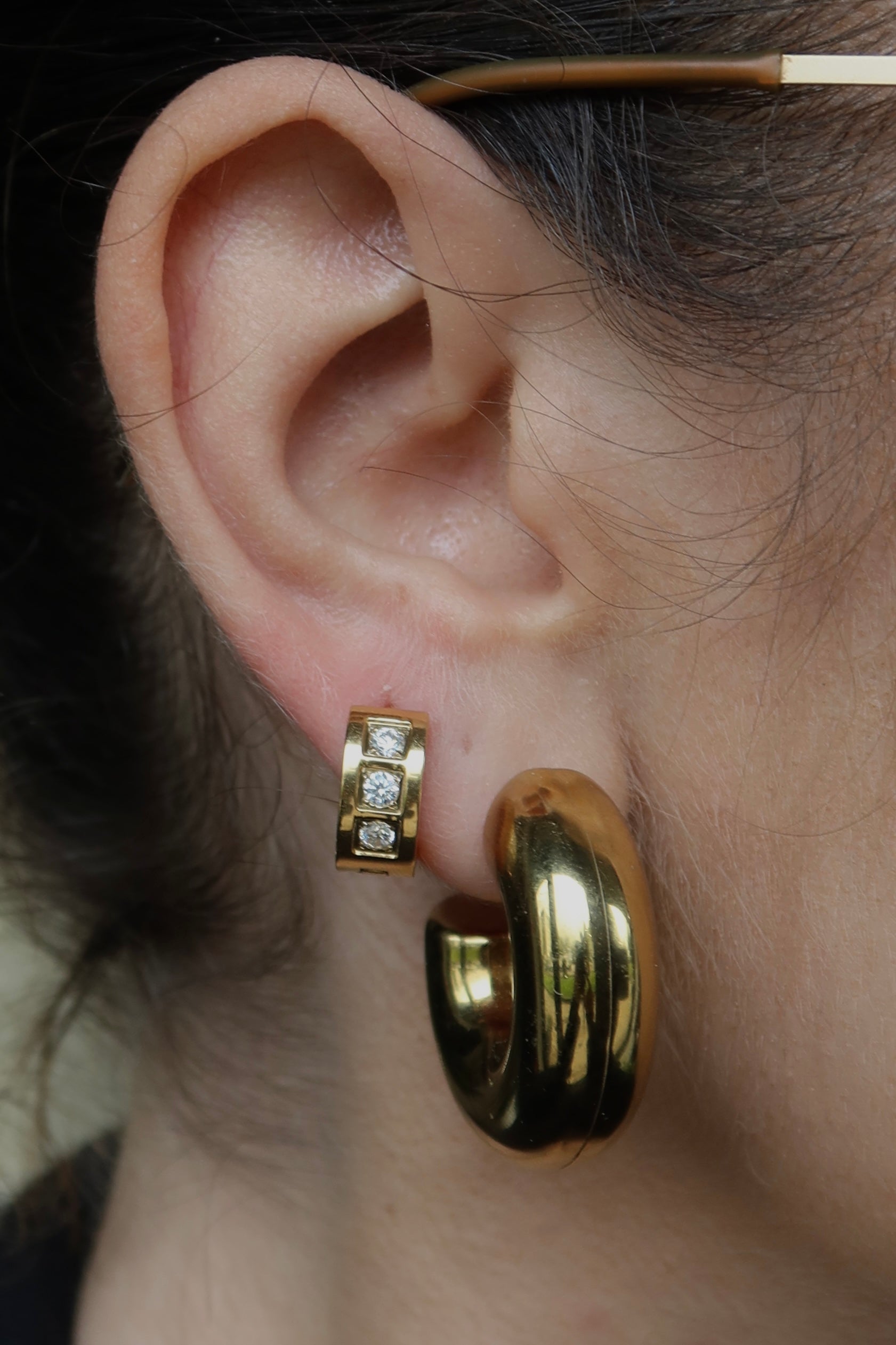 Argolas intemporais e clássicas, cravejadas com zirconias brancas. Práticas, abrem e fecham num só click.
