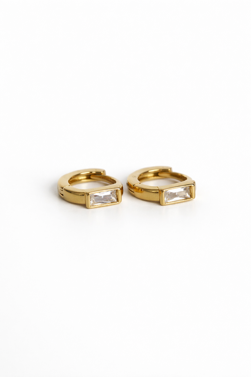 Brincos de argola em aço inoxidável. Detalhe em zircónia cúbica verde, branca ou rosa.