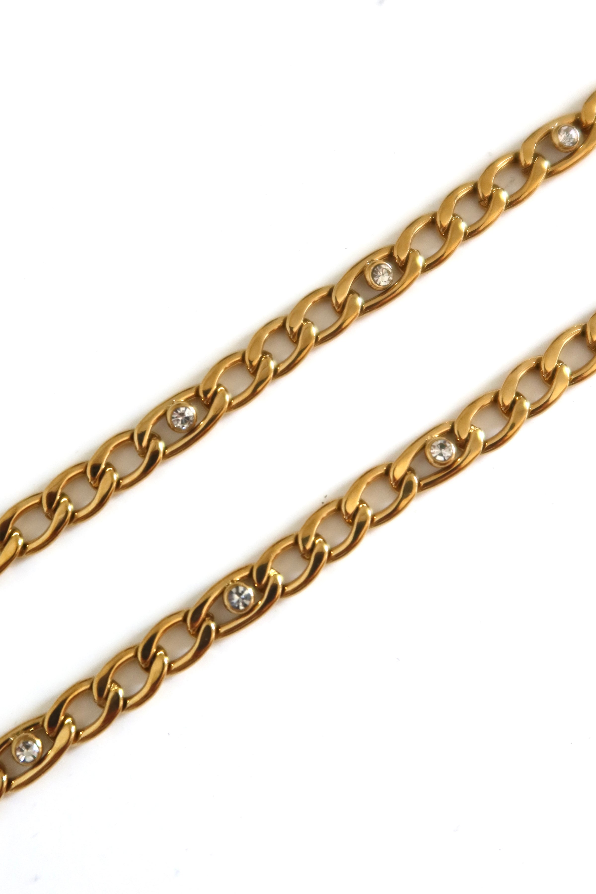 Pulseira com elos clássicos com detalhes em zircónias brilhantes.