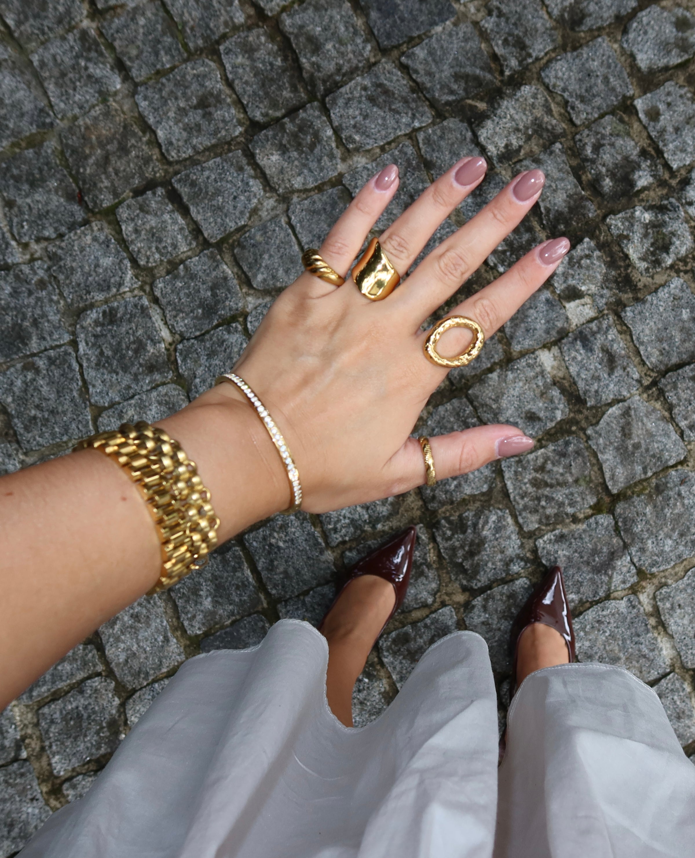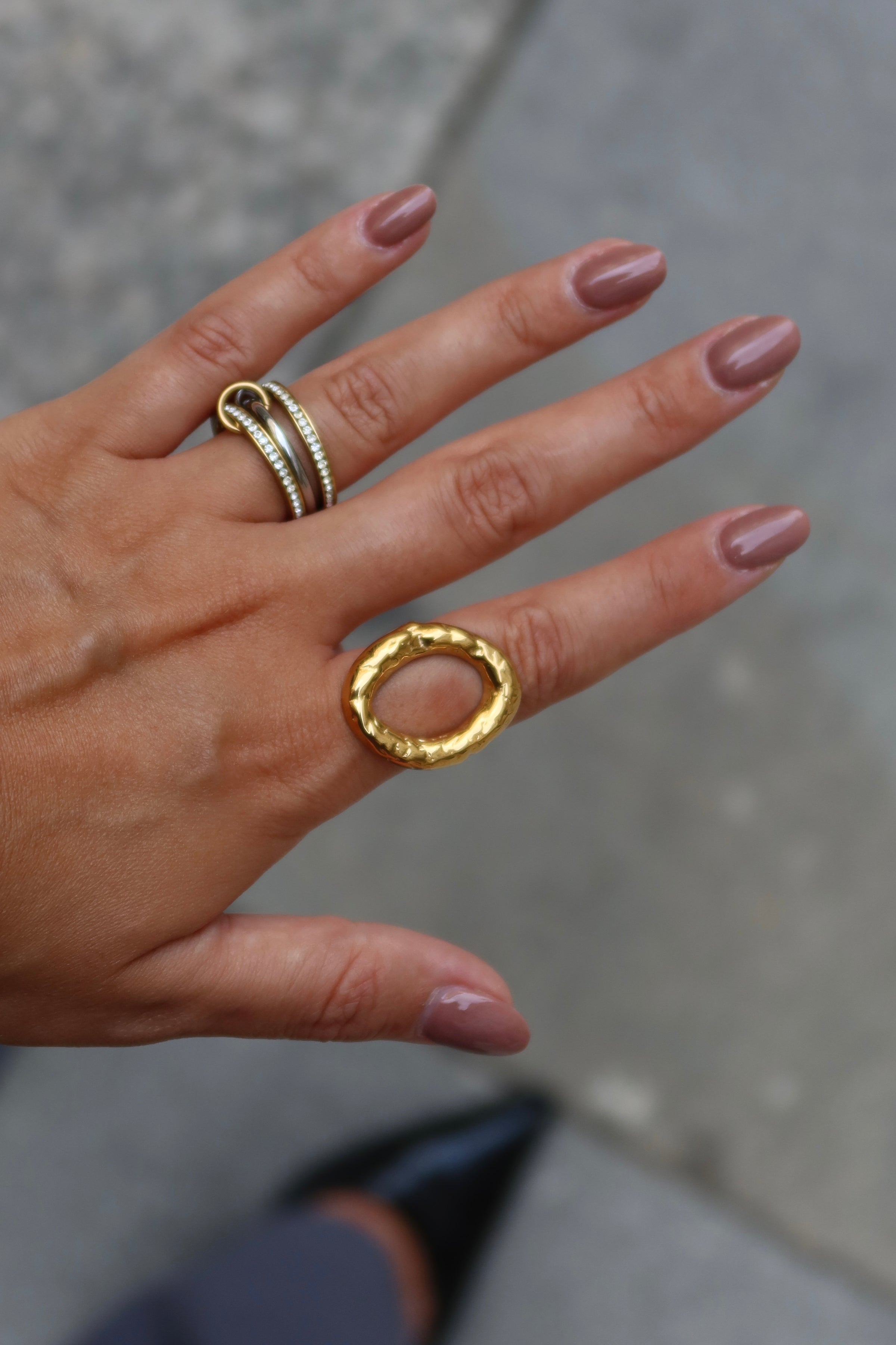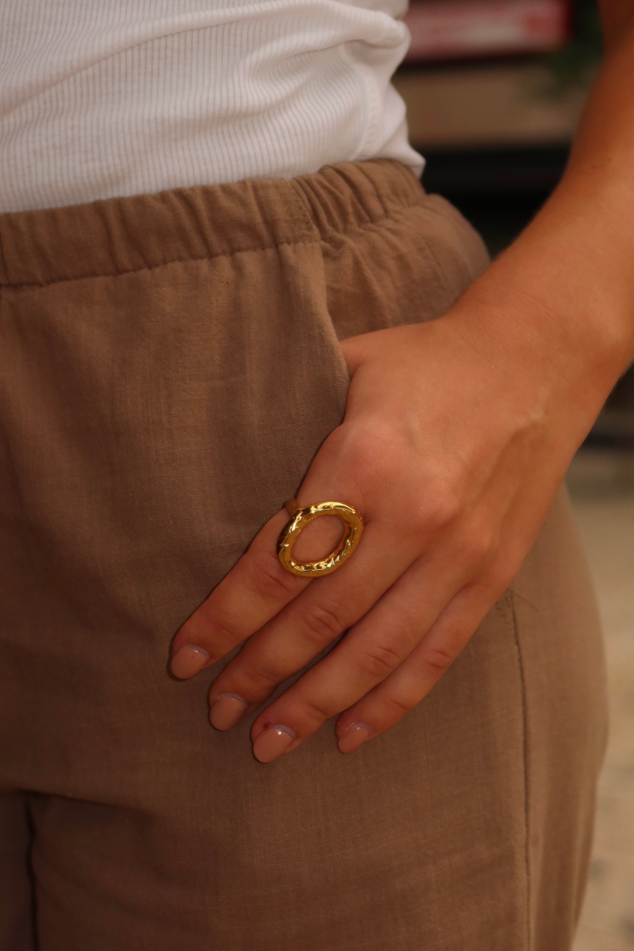 Anel em aço inoxidável banhado a ouro 18k. Resistente à água e hipoalergénico.